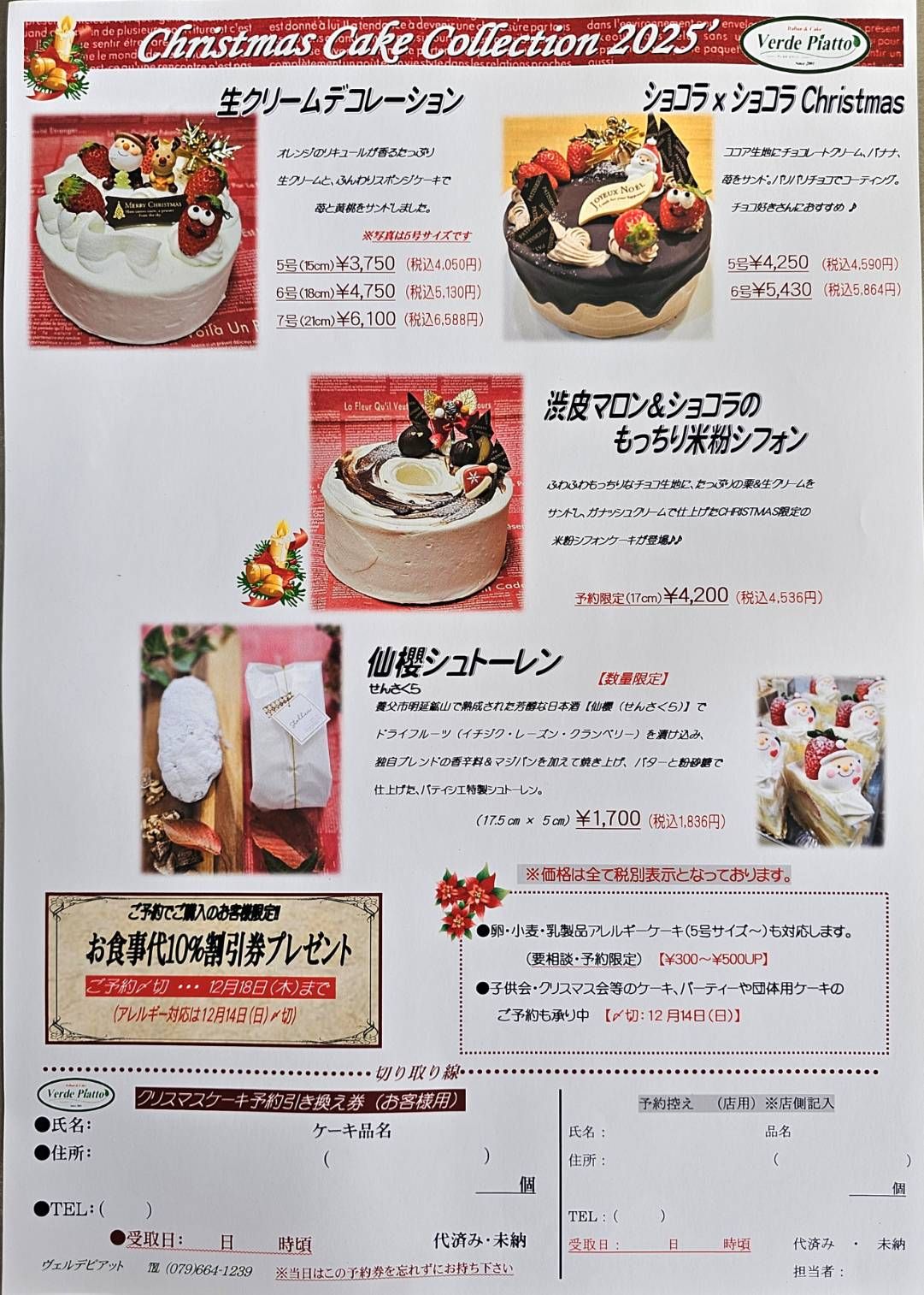 パティシエ特製クリスマスケーキを今年もご用意いたしました!予約限定&数量限定となりますので、お早めにご予約くださいませ。